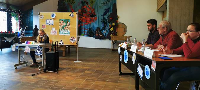 Aus dem Jugendbuch ,,4 ½ Freunde und der Schatz im Schulklo‘‘ von Joachim Friedrich las Linda Knoll aus der Klasse 6a vor. Nach einer kurzen aussagekräftigen Buchbeschreibung, las die Schülerin eine spannende Textpassage über einen Erpresserbrief, mit welchem die 4 ½ Freunde einen möglichen Erpresser konfrontieren um einen Fall zu lösen, vor.