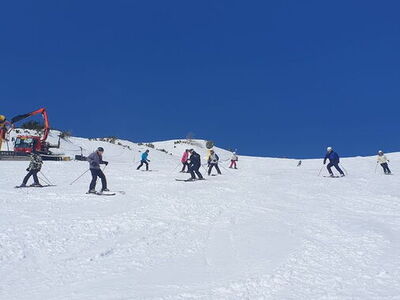 Unsere Unterkunft liegt inmitten der Skipisten, daher mussten trotz des späten Termins, aufgrund starken Schneefalls, die Schneeketten angelegt werden, damit wir sicher auf den Berg gebracht werden konnten. Unter der Leitung von Herrn Obermeier und mit Unterstützung von Frau Pellkofer und Herrn Bauer waren dieses Jahr 32 SchülerInnen dabei, welche sich sichtlich über den frischen Schnee und die im Anschluss folgenden sonnigen Tage freuten.