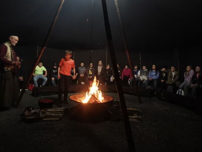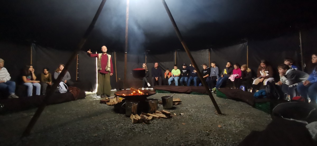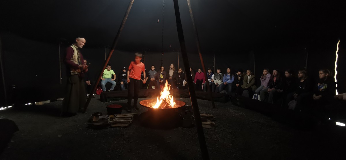 Dort angekommen versammelten sie sich in der Dunkelheit des Zeltes um ein knisterndes Lagerfeuer und lauschten gespannt dem Erzähler Matthias. Dieser gab das Märchen eines besonders geschickten Diebes, welcher es auf ein wunderschönes Pferd mit Glocken abgesehen hatte, zum Besten.