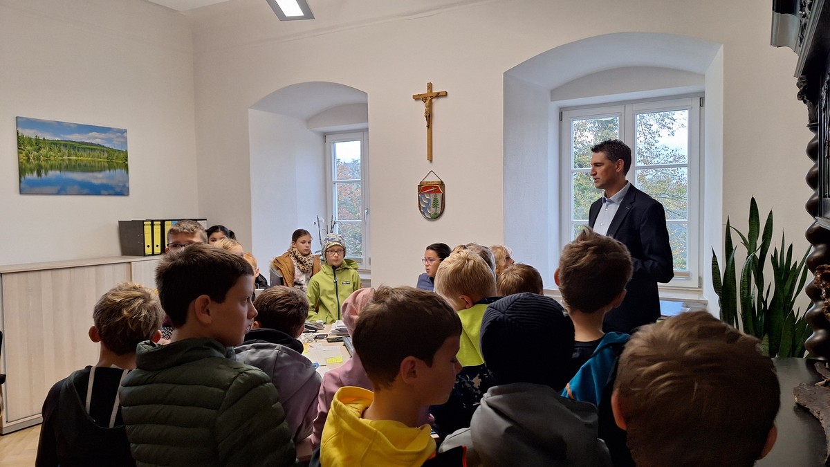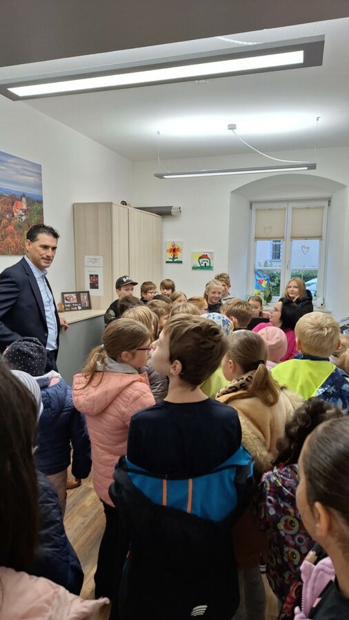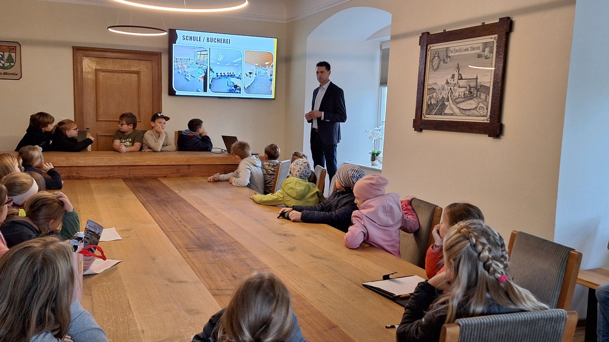 Im Rahmen des HSU-Unterrichts besuchten die beiden 4. Klassen nach intensiver Vorbereitung das Rathaus in Mitterfels. Bürgermeister Andreas Liebl nahm die Kinder in Empfang und führte sie dankenswerterweise durch alle Räume. Er erklärte kindgerecht die Funktionen der einzelnen Ämter und stellte die Angestellten vor. Geduldig beantwortete er alle Fragen und führte die Klassen sogar noch auf den Dachboden.