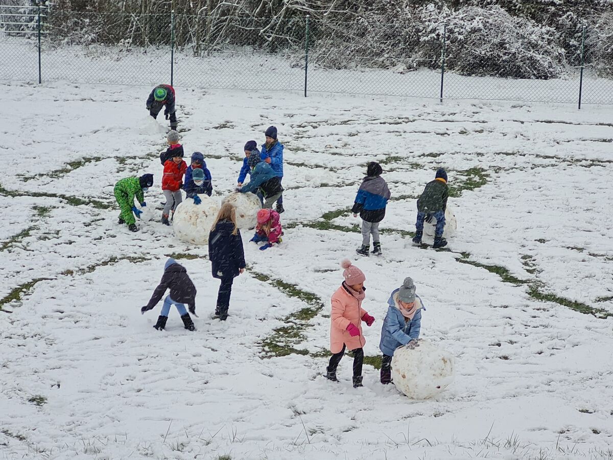 Voller Freude und Enthusiasmus haben die Kinder der 1. und 2. Klassen in Haselbach ihre erste Schneepause in diesem Jahr genossen. Der weitläufige Pausenbereich ermöglicht es den Kindern, Schneemänner zu bauen, am Schneehang zu klettern oder Schneeburgen zu bauen.