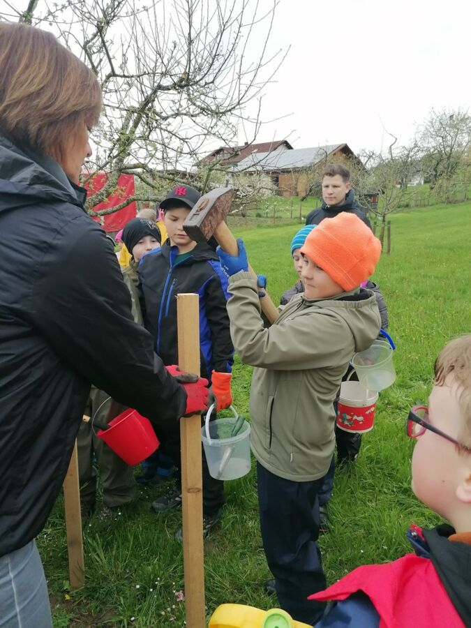 Am 24. April 2023 wurden die Klassen 3a und 3b, zusammen mit ihren Klassleitern Herrn Biermeier und Frau Kotulla, gleich morgens von Herrn Simmel vom Obst- und Gartenbauverein Mitterfels an der Schule abgeholt.