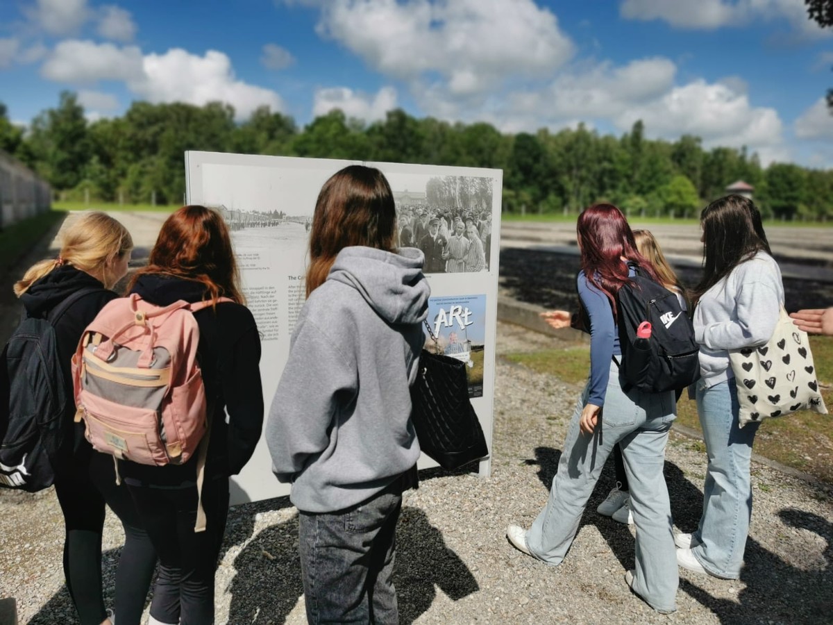 Am Montag, den 30.05.2022, besuchten die 8.Klasse gemeinsam mit ihrem GPG-Lehrer Herr Drexler und Förderlehrerin Frau Hausladen das ehemalige Konzentrationslager in Dachau. An verschiedenen Stationen sammelten die Jugendliche unmittelbar Informationen über die Gräueltaten der Vergangenheit. Sie begutachteten die rekonstruierten Baracken, das Krematorium, die religiösen Gedenkstätten sowie das renovierte Wirtschaftsgebäude (Museum).