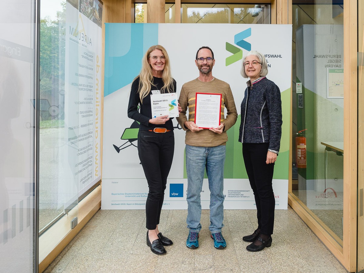 Mit dem Berufswahlsiegel werden Schulen ausgezeichnet, deren Maßnahmen und Angebote innerhalb der beruflichen Orientierung von außergewöhnlicher Qualität sind. Davon profitieren Schülerinnen und Schüler und auch bayerische Unternehmen, die in Zeiten des Fachkräftemangels auf Arbeitskräfte angewiesen sind. So arbeitet die Mittelschule seit Jahren nach einem stimmig aufgearbeiteten Berufswahlkonzept, das in der 5. Klasse beginnt und sich Jahr für Jahr bis zum hoffentlich erfolgreichen Qualifizierenden Abschluss der Mittelschule oder dem Mittleren Abschluss der Mittelschule weiter entwickelt. Ziel ist dabei für alle Schülerinnen und Schüler einen passenden Ausbildungsplatz in einem Betrieb zu finden oder aber auch eine weitere schulische Ausbildung anzustreben. Der Text der Laudatio verdeutlicht und würdigt das Konzept der Mittelschule und zeigt, dass sich unsere kontinuierliche Arbeit lohnt.