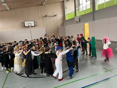 Nach der Pause trafen sich alle Kinder hübsch verkleidet und geschminkt in der Turnhalle von Haselbach, um die letzten drei Unterrichtsstunden am "Unsinnigen Donnerstag" nicht wie gewohnt im Klassenzimmer zu verbringen, sondern bei Spiel und Spaß.