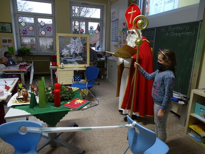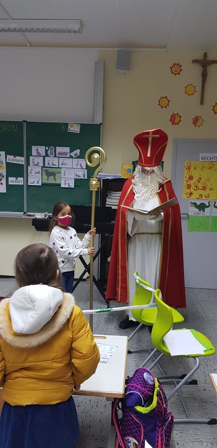 Mit Gedichten und Sprechgesang empfingen die Schülerinnen und Schüler der Klassen 1 und 2 in Haselbach den Hl. Nikolaus. Coronakonform mit Maske und den Mindestabstand einhaltend besuchte er jede einzelne Klasse und fand sowohl lobende, als auch die passenden mahnenden Worte für die Schülerinnen und Schüler der Grundschule Haselbach. Zum Schluss erhielt jedes Kind einen fairtrade Schokonikolaus geschenkt, den der Elternbeirat zur Verfügung gestellt hat. Danach ging es für den Nikolaus weiter nach Mitterfels, um dort die Schüler*innen der Klassen 3 – 10 zu beschenken. Aber nicht nur alle Schülerinnen und Schüler der GS-MS Mitterfels-Haselbach erhielten einen Nikolaus, der Elternbeirat dachte auch an alle Lehrkräfte und helfenden Hände unserer Schule.