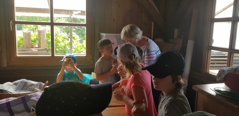 Nach der Brotzeit ging es an die Stationen, die der OGV vorbereitet hatte. Die Kinder durften Brot backen, Butter schütteln und Kirschen sammeln. Dazwischen gab es Zeit zum Fussball spielen und Tauziehen.
