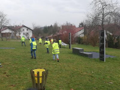 Alle Kinder der Grundschule Haselbach machten sich rund um das Schulgelände auf den Weg, um sich auch heuer wieder an der Aktion "Sauber macht lustig" zu beteiligen. Bestens ausgestattet mit Handschuhen, Warnwesten und mitgebrachten Greifzangen ging es bei Nieselregen auf die Jagd nach den Umweltsünden. Und man wurde schnell fündig: neben zahlreichen Pfandflaschen, Zigarettenresten, Kronkorken oder Plastiktüten schleppten die Schüler der 1a einen kleinen Reifen zurück zum Schulhaus. Die vollen Mülltüten wurden von Bauhofmitarbeitern mitgenommen und fachgerecht entsorgt. Alle waren mit Eifer bei der Sache und freuten sich, die Gegend rund um die Haselbacher Schule vom Unrat befreit und die Natur wieder sauber gemacht zu haben.