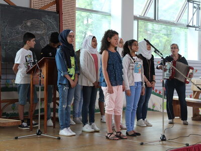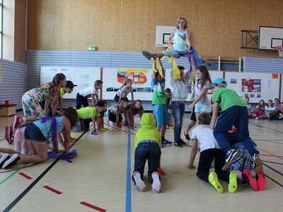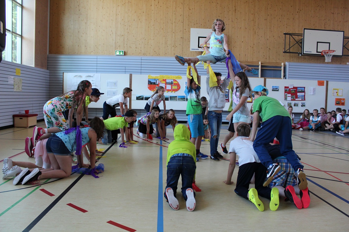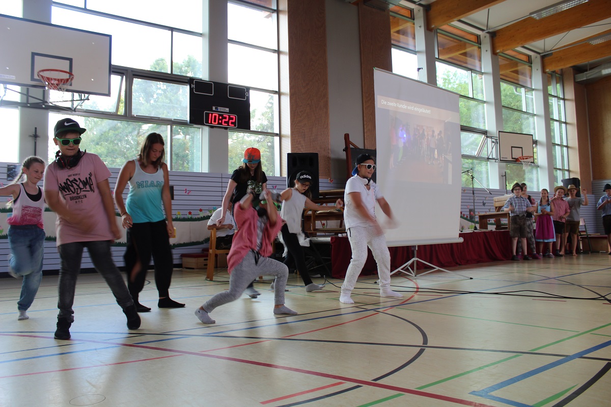 - Eine Vorstellung in der Turnhalle mit: Gesang, Tanz, Präsentationen