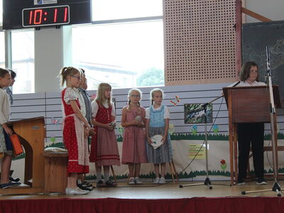 Das war ein schönes Fest! Mit dieser Meinung verließen am Freitag, den 22. Juni die rund 360 Schülerinnen und Schüler der Grund- und Mittelschule Mitterfels-Haselbach, zahlreiche Eltern, Verwandte und Ehrengäste, das Schulgebäude in Mitterfels. Unter dem Motto „Die Geschichte unserer Schule“, präsentierten die Klassen und ihre Lehrkräfte zahlreiche Stationen und Aufführungen, die zum Zuschauen und Mitmachen einluden. Der Elternbeirat hatte sich fleißig ins Zeug gelegt und kümmerte sich mit einem riesigen Kuchenbuffet und Bratwürsten um das leibliche Wohl der Gäste.