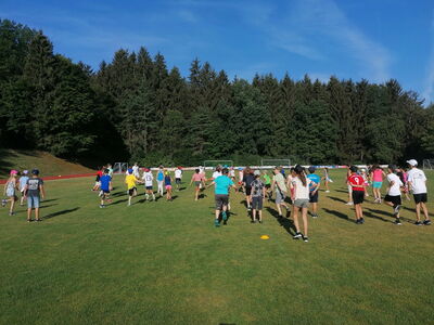 Am 20.7.22 , am bisher heißesten Tag des Jahres, starteten die Erst- und Zweitklässler in ihr Sportfest. Parallel dazu führten die Dritt- und Viertklässler die diesjährigen Bundesjugendspiele durch. Nach einem kurzen Aufwärmtraining durch unseren Lehramtsanwärter Tobias Biermaier, wurde im Anschluss geworfen, gesprungen und gesprintet. Auch beim Ausdauerlauf gaben die Schüler nochmal ihr Bestes. Zwischendurch konnte an der Spielestation Pause gemacht werden. An diesem heißen Vormittag waren gefüllte Trinkflaschen, Schattenplätze und Sonnenschirme heiß begehrt. Zum krönenden Abschluss gab es für alle noch ein erfrischendes Eis, das vom Elternbeirat gespendet wurde.