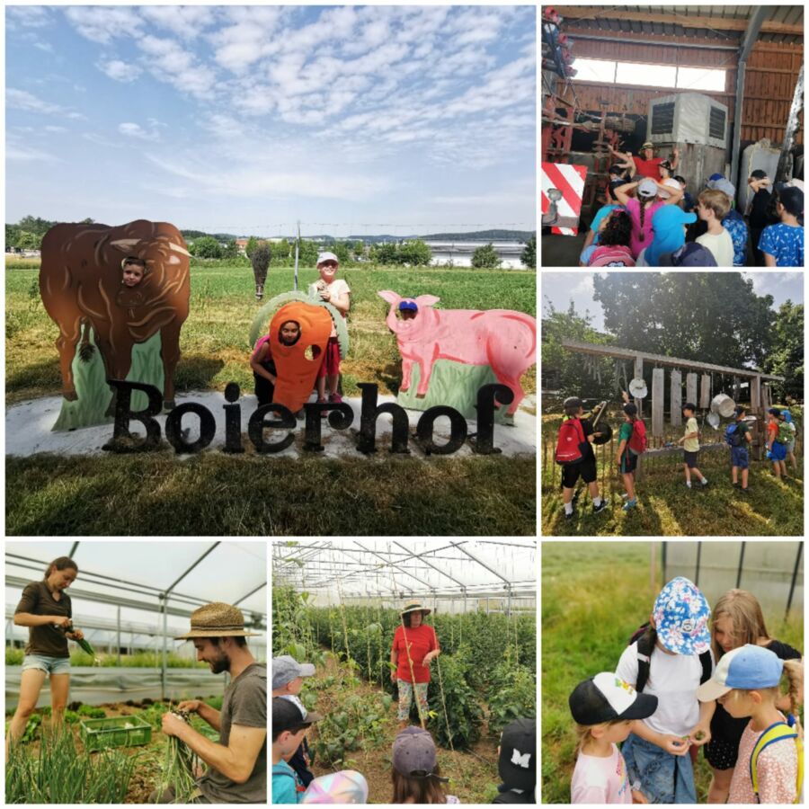 Im Rahmen des HSU - Unterrichts besuchten die Klassen 2a und 2b den Bio- Bauernhof "Boierhof", um das Thema Haustiere/Nutztiere vor Ort zu vertiefen. Nach einer sehr interessanten Einführung erhielten die Kinder eine Hofführung mit Erklärungen durch Frau Hausladen, der Senior-Bäuerin. Am meisten Spaß hatten die Schüler, als sie die Schweine füttern durften. Den Abschluss des schulischen Vormittags verbrachten sie im Landlust- Wandelweg bei den Schafen und Kaninchen, wo man außerdem Musik machen und im Spielzelt Verstecken spielen konnte.