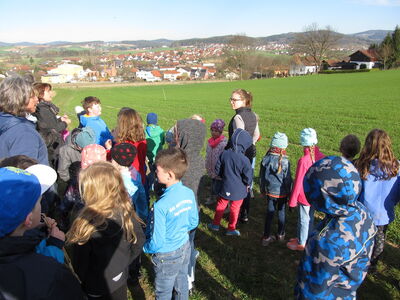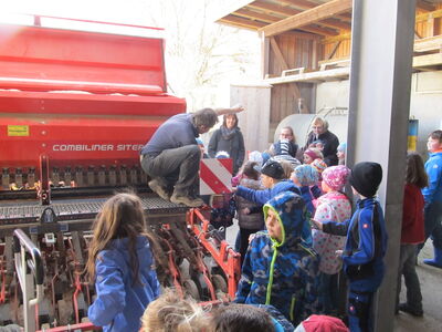 Vroni Hausladen, unsere Förderlehrerin begrüßte die Kinder und Lehrer zusammen mit ihrer Mutter auf dem Bio-Bauernhof in Willmering. Im Klassenzimmer im Grünen erzählte Frau Hausladen einges über den Boierhof, bevor sich alle auf einen interessanten Rundgang begaben. Die Kinder erfuhren nicht nur, dass das Windrad zur eigenen Stromerzeugung aufgestellt wurde, sondern auch, welches Futter für die Schweine auf den Feldern angebaut wird, wo Stroh und Heu gelagert werden, dass die Rinder auf der Weide durch einen elektrischen Zaun geschützt werden müssen, dass sich befreundete Bauern gegenseitig die kostspieligen Maschinen ausleihen und dass das Saatgut in einer ganz bestimmten Tiefe und Bodenverdichtung ausgebracht werden muss, um keimen zu können. Aber auch der Obst- und Gemüseanbau interessierte die Schülerinnen und Schüler. Aber das Highlight waren neben dem Füttern der Schweine die drei Isländer, die sich bereitwillig striegeln, streicheln und knuddeln ließen. Da hatten selbst die Hunde Akasha und ihr Bruder Wastl kaum noch Chancen. Gut gestärkt mit Bio-Karotten und Bio-Radieschen machte sich die Gruppe gegen Mittag wieder auf den Weg nach Haselbach, wo in den kommenden Schulstunden das Thema Haustiere noch intensiviert werden kann.