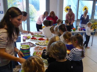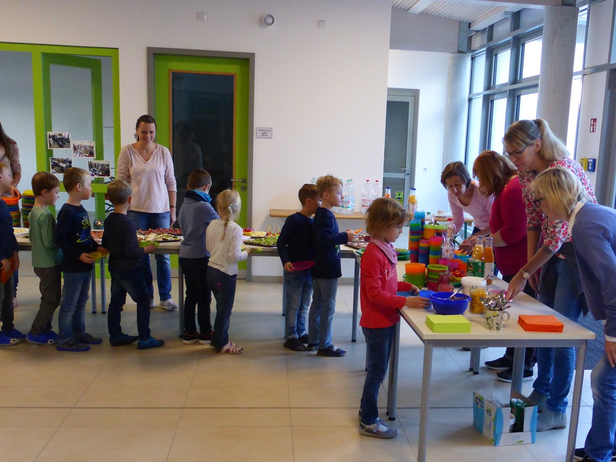 Den krönenden Abschluss fand die Woche der Gesundheit und Nachhaltigkeit im „Gesunden Pausenfrühstück“, das viele fleißige Hände vom Elternbeirat, unter der Leitung von Elternbeiratsvorsitzender Frau Rauscher, zubereitet und äußerst ansprechend angeboten hatten. Rasch waren die Tabletts geleert und jedes Kind holte sich mehrmals einen Nachschlag. Mit viel neuem Wissen, zahlreichen neuen Eindrücken und Erfahrungen gingen die fünf aufregenden Tage viel zu schnell vorüber.