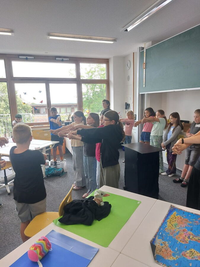 Frau Marlene Aigner kam zu Besuch und hat an zwei Tagen für die Klassen 4a und bei zusammen mit ihrer Tochter und ihrem Sohn einen Zauber-Workshop durchgeführt.