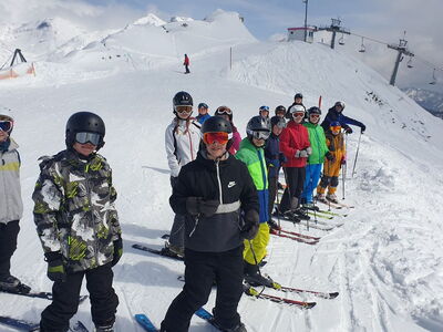 Unsere Unterkunft liegt inmitten der Skipisten, daher mussten trotz des späten Termins, aufgrund starken Schneefalls, die Schneeketten angelegt werden, damit wir sicher auf den Berg gebracht werden konnten. Unter der Leitung von Herrn Obermeier und mit Unterstützung von Frau Pellkofer und Herrn Bauer waren dieses Jahr 32 SchülerInnen dabei, welche sich sichtlich über den frischen Schnee und die im Anschluss folgenden sonnigen Tage freuten.