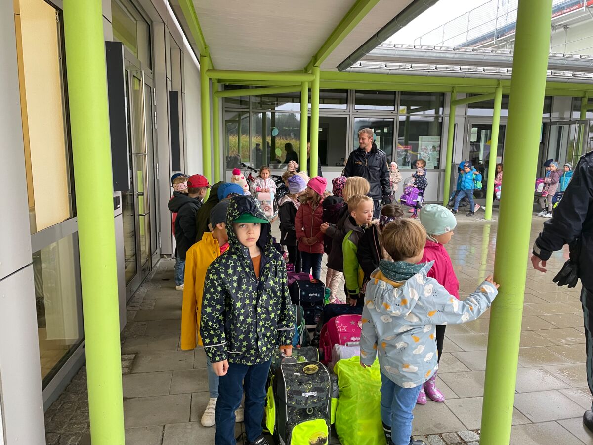 Bereits am Ende der ersten Schulwoche besuchten Polizeihauptmeister Kappelmann zusammen mit seinem Kollegen von der Polizeistation Bogen die ABC-Schützen der Grundschule Haselbach, um mit ihnen gemeinsam das richtige Verhalten vor, während und nach einer Busfahrt zu besprechen und einzuüben. Ausgerüstet mit der Schultasche auf dem Rücken, stellten sich die Kinder hintereinander an. Dass man an der Bushaltestelle nicht schubsen, laufen oder herum hopsen darf, war allen sofort einsichtig, da die Gefahr, auf die Straße und damit vor ein Auto zu stürzen zu groß wäre. Die Schultaschen wurden mit gebührendem Abstand hintereinander aufgereiht und erst wieder geholt, als der Bus an der Bushaltestelle vorfuhr. Ohne Drängeln oder Schubsen, aber mit einem freundlichen "Hallo!" für Busfahrer Heinz auf den Lippen, stiegen die Kinder in den Bus ein, füllten die Sitzplätze rasch auf und verstauten ihre Taschen unter den Beinen bzw. unter dem Vordersitz. Ruhig sitzenbleiben, damit sich der Busfahrer auf den Verkehr und sein Fahrzeug konzentrieren kann, das leuchtet den Schulanfängern ein. Außerdem ist allen klar, dass weder der Bus beschmiert werden darf, noch während der Fahrt aufgestanden werden soll. Sicherheit geht vor. Schließlich fuhr PHM Kappelmann zusammen mit den Klassen 1a und 1b, 2a und 2b und den Lehrerinnen eine Runde durch Haselbach, um authentisch üben zu können, wie wichtig das Angeschnallt sein und am Platz sitzen ist. Geordnetes Aussteigen, schauen, ob Radfahrer oder andere Verkehrsteilnehmer nahe am Bus vorbei wollen waren die zwei Schwerpunkte bei der Ausstiegstation. Zurück an der Schule vertieften die Kinder noch einmal die gelernten Verhaltensregeln und verabschiedeten sich, bevor sie in den Klassenräumen ihr Wissen schriftlich sicherten.
