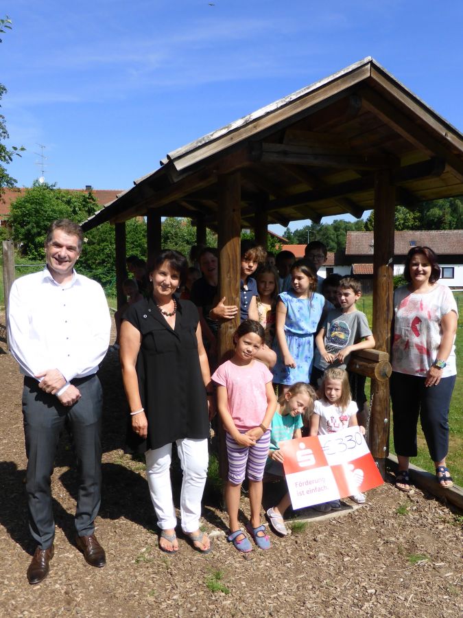 Da strahlten die Kinder der Grundschule Haselbach mit der Sonne um die Wette, als sie Besuch von Johannes Schmid, Geschäftsstellenleiter der Sparkasse Mitterfels bekamen. Mit im Gepäck hatte er einen Spenden-Scheck in Höhe von 330 Euro. Als sich die Schule an die Bank wandte, bat sie um finanzielle Unterstützung, damit die bereits vorhandenen Spielzeugkisten mit Spielsachen für die Pause aufgefüllt werden können. Im Laufe des Schuljahres sind einige Gegenstände, wie Soft-Wurfscheiben, Dosenstelzen, Indiacas oder Springseile verschlissen. Aber auch Herzenswünsche wie ein Schwungtuch, Moonhoppers oder Federballsets können mit Hilfe der großzügigen Spende nun ersetzt bzw. neu gekauft werden. Wenn sich Schulen oder Vereine an den Schulservice der Sparkasse wenden, ist die Bank gerne bereit, diesen Finanzspritzen zukommen zu lassen und Schulen oder Sportvereine zu sponsern. Jetzt können zahlreiche stabile, langlebige Spielsachen angeschafft werden, die den Kindern sowohl im Pausenhof, als auch bei Regenpausen im Schulhaus viel Bewegungsfreude bereiten werden.