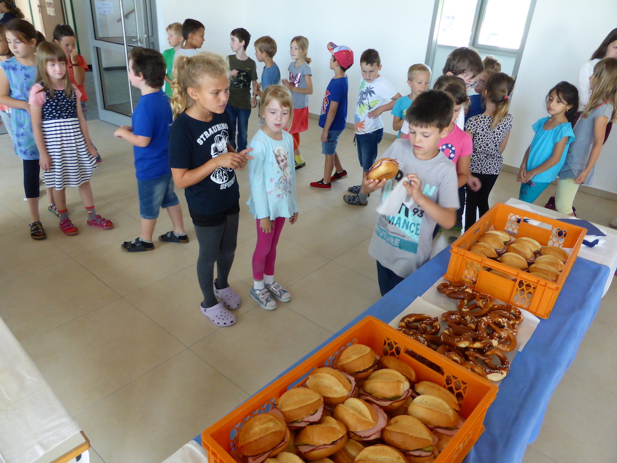 Da hatten die Schüler von Haselbach gleich doppelten Grund zur Freude: erstens, dass Frau Steininger-Nelz die Superidee hatte, schon einen Tag vor dem offiziellen Startschuss für "Sauber macht lustig" sich mit der gesamten Schule auf den Weg zu machen und rund um das Schulgebäude einen sinnvollen Beitrag zum Umweltschutz zu leisten. Denn so konnten sich alle Mädchen und Buben aktiv bei der Aktion der ZAW mit einbringen. Zweitens verdankten sie es Bürgermeister Johann Sykora, der dafür sorgte, dass sich alle in die Listen eintrugen und sich somit auch eine Brotzeit verdienten. Und diese genossen die Kinder nun in der neuen Aula der Grundschule Haselbach in vollen Zügen. Bei leckeren Leberkässemmeln, Brezen und Getränken erinnerten sie sich gerne an die Sammelaktion im Frühling, die bei den meisten Grundschülern einen nachhaltigen Eindruck hinterlassen hat.