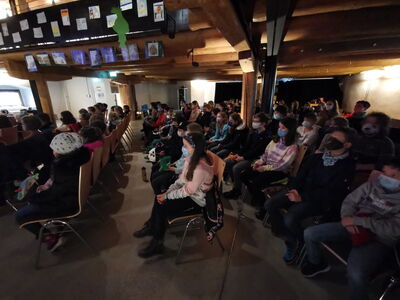 Im Vorfeld kamen einige Schülerinnen des P-Seminars in die Klassen um das Stück zu erklären und mit den Kindern Masken zu basteln und Bilder zu malen.