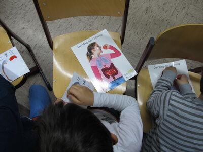 Die Klassen 2a und 2b der Grundschule in Haselbach nehmen heuer bereits das 2. Jahr an der Aktion „Klasse 2000“ teil. Frau Neubert, die nun die Kinder in regelmäßigen Abständen besuchen wird, führte mit der Stunde „Der Weg der Nahrung“ in das diesjährige Thema ein. Was passiert mit meinem Essen, das in meinem Mund verschwindet? Diese Frage versuchten die Schüler mit Hilfe eines Klebepuzzles zu beantworten. Anschaulich erklärt an einem übersichtlichen Plakat waren die Kinder nun fit, selbst die Nahrung, den Mund, die Speiseröhre, den Magen, den Dünn- und den Dickdarm zu spielen, und den Weg der Nahrung zu durchwandern. Das gab vielleicht ein „Hallo“, als man als Nahrung am Ende der Schlange aus dem Dickdarm geschoben wurde. Bis zum nächsten Mal werden sich nun die Lehrerinnen Frau Fuchshuber und Frau Bach-Jobst zusammen mit den Schülern Gedanken zur gesunden Ernährung, der Nahrungspyramide und den einzelnen Nährstoffen machen, bevor Klaro, das Maskottchen, wieder in den Klassenzimmern von Haselbach zu Besuch kommt.