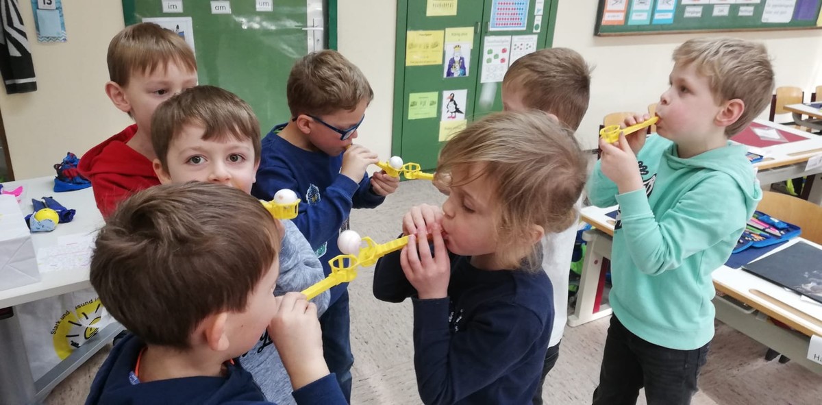 Auch die Schülerinnen und Schüler der Grund- und Mittelschule Mitterfels-Haselbach beteiligen sich an dem Projekt Klasse 2000. Damit Kinder sich gesund entwickeln können und zu starken Persönlichkeiten heranwachsen, bedarf es verschiedener Kompetenzen. Dazu gehören gesund essen und trinken, sich entspannen können, sich viel bewegen, sich selber und andere mögen, Konflikte lösen können, kritisch sein und auch mal nein-sagen können. Auch im Schuljahr 2019/20 fördert die AOK Bayern das Projekt, das die Kinder von nun an vier Jahre lang begleitet. Zusammen mit dem Maskottchen Klaro oder Klara wurden in der ersten Basisunterrichtsstunde, die Frau Birgit Raith mit den Kindern der Klassen 1a und 1b zusammen gestaltet hat, Bewegungen wie bei einer Giraffe, Streckübungen oder auch Hampelmänner gemacht. Auch die Atmung wurde genauestens beobachtet und der Weg der Luft zur Lunge beschrieben. Mit Hilfe eines Atem-Trainers, den Frau Raith für jedes Kind mitgebracht hatte, konnte die ganze Klasse den tischtennisgroßen Styroporball beobachten, wie er sich in der Höhe hin und her drehte, rauf und runter geblasen wurde oder kontrolliert weggeblasen werden konnte. Abschließend entspannten sich die Kinder und ihr Atem wurde schnell wieder ruhig. In der Klasse-2000-Mappe wurden die Infos über den Weg der Luft zur Lunge noch einmal gesichert. Jeder durfte zum Ende der Stunde mitteilen, was ihm am besten an der Unterrichtseinheit gefallen hat, was weniger schön war und natürlich musste auch noch die Frage geklärt werden, ob Klaro/Klara wieder einmal nach Haselbach kommen soll. Alle freuten sich über ihre Hausaufgabe, ein persönliches Klasse-2000-Maskottchen basteln zu dürfen und so zu gestalten, wie es jedem am besten gefällt. Mit der CD können alle Bewegungsübungen, die in der Schule regelmäßig durchgeführt werden, auch daheim wiederholt und nachgemacht werden. Denn das Projekt Klasse-2000 zieht sich von nun an, wie ein roter Faden durch das gesamte Schuljahr hindurch.