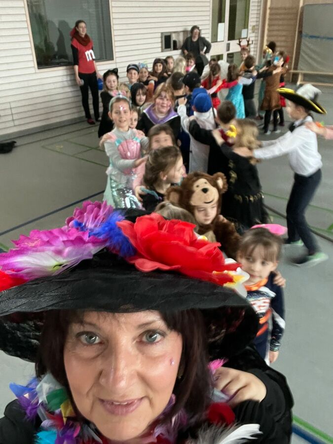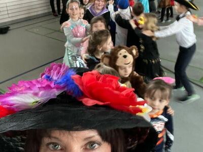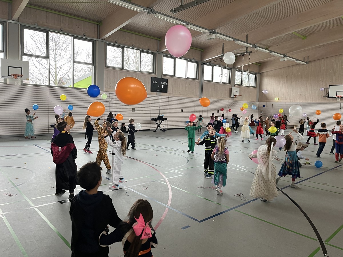 Nach der Pause trafen sich alle Kinder hübsch verkleidet und geschminkt in der Turnhalle von Haselbach, um die letzten drei Unterrichtsstunden am "Unsinnigen Donnerstag" nicht wie gewohnt im Klassenzimmer zu verbringen, sondern bei Spiel und Spaß. Einige Mädchen und Buben trugen ihre einstudierten Lieder und Tänze vor, andere freuten sich, als die Polonaise quer durch das Lehrerzimmer führte, wo schon die herrlichsten Donuts auf sie warteten. Diese wurden in bewährter Weise vom Elternbeirat spendiert. Aber auch Luftballontänze, Stopp-Lieder und viele weitere unterhaltsame Spielchen präsentierten Frau Steininger-Nelz und Frau Fuchshuber den Kindern, bis um kurz vor Unterrichtsschluss alle "Maschgara" glücklich und zufrieden die restlichen Luftschlangen einsammelten und sich noch schnell einen bunten Luftballon für zuhause schnappten.
