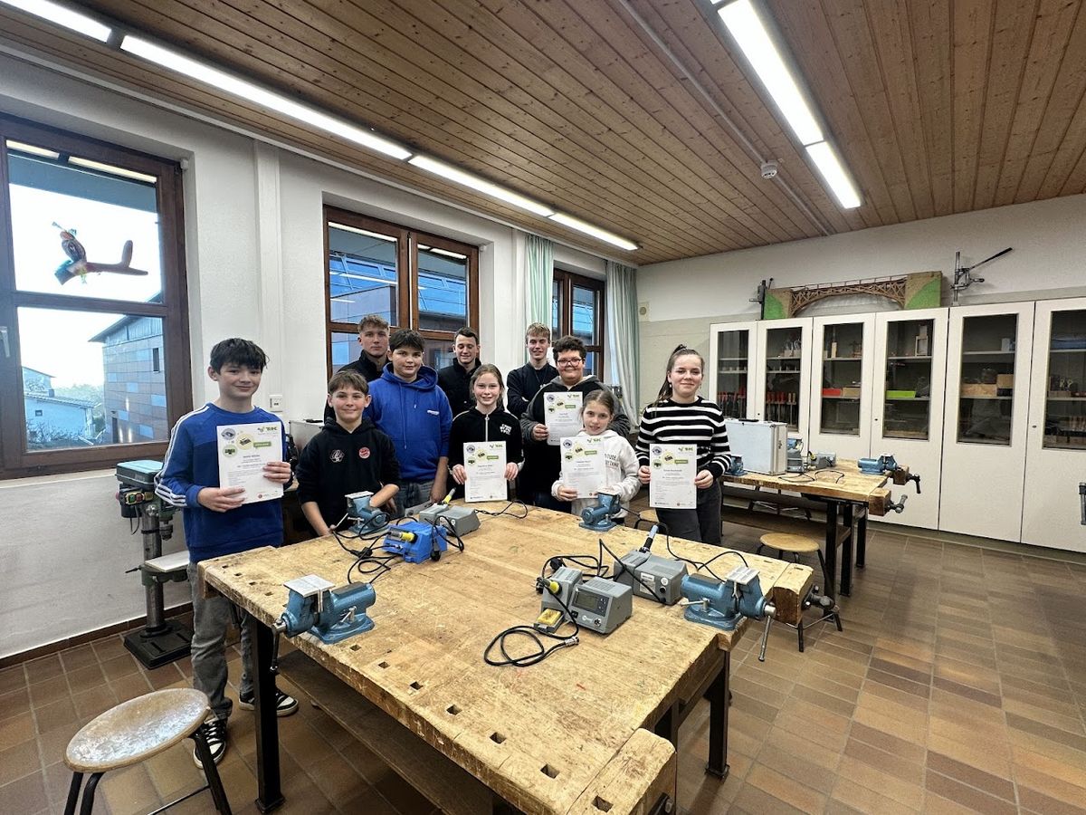 Wieder nahmen im Rahmen dieses Angebots Schüler der 6. Klasse der Grund- und Mittelschule Mitterfels-Haselbach teil. Dieses Mal stand der Bau eines Alarmschalters, oder auch Stimmenverzerrers, sowie einer Signallichtanlage im Rahmen des Fortgeschrittenenkurses auf dem Plan. Dieser Herausforderung stellten sich 7 Schülerinnen und Schüler mit Begeisterung und Engagement. Hervorragende Unterstützung erhielten sie von bis zu drei Auszubildenden der Firma Strama-MPS, welche der Grund- und Mittelschule Mitterfels-Haselbach seit 2011 bei diesem Angebot höchste Förderung zuteilwerden lässt. Hierfür ist die Schule äußerst dankbar. Auf den entsprechenden Kurs im kommenden Schuljahr freuen sich bereits jetzt sowohl die Schüler, als auch die Auszubildenden der Firma Strama-MPS.