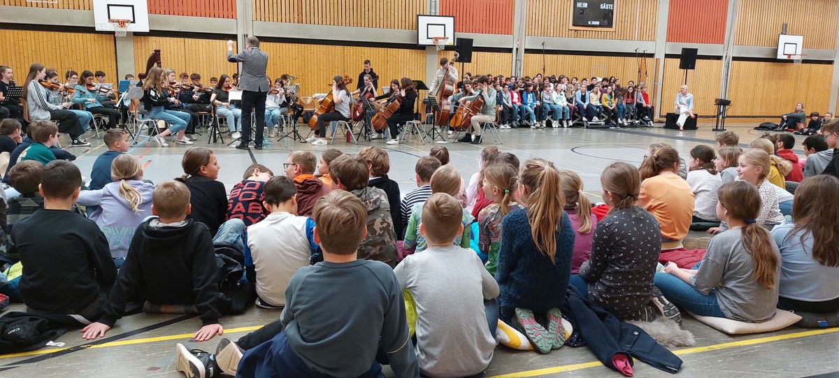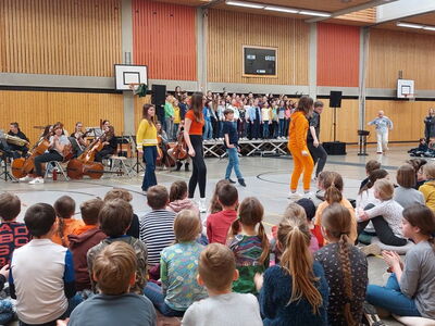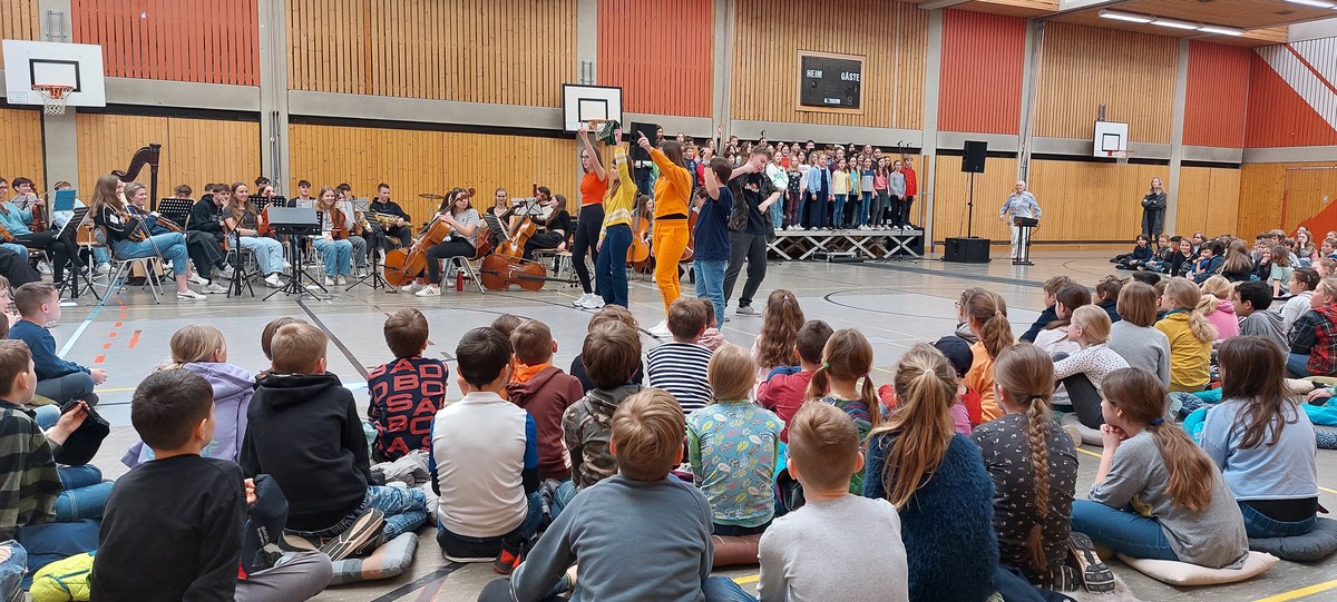 Ein tolles Sitzkissenkonzert durften die Schüler und Schülerinnen der 4. Klassen am Anton-Bruckner-Gymnasium besuchen. Mit Stücken aus bekannten Filmen wie „Frozen“ oder „Star Wars“ stellte sich das große Orchester vor. Anschließend wurden die verschiedenen Instrumentengruppen vorgestellt und die Kinder konnten Fragen dazu stellen.