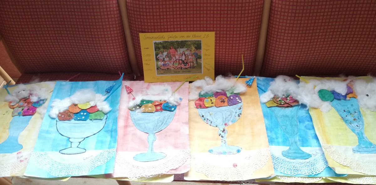 Zum Ende des Schuljahres wollten die Zweitklässler noch einmal den Bewohnern des BRK Mitterfels eine Freude bereiten. Dieses Mal gestalteten sie "Sommerbilder" und hefteten ihre besten Wünsche mit dazu. Frau Eichler und der Heimleiter Herr Dürr nahmen die kleinen Kunstwerke freudig entgegen. Und damit es in Zukunft nicht nur beim "Abliefern" bleibt, hat man gemeinsam entschieden, dass man im kommenden Schuljahr auch Begegnungen im BRK möglich machen möchte, den hohen Kosten zum Trotz. Der Kontakt bleibt also nicht nur aufrechterhalten, sondern wird intensiviert. Versprochen!