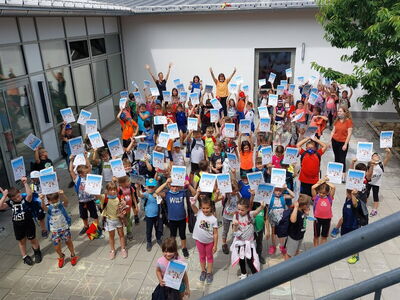 Auch in diesen Zeiten gibt es sie noch – die besonderen Tage, die Schule noch lebendiger machen: Am Tag ihres Sport- und Spielfests durften die Schultaschen der 1. und 2. Klassen der Schule Haselbach zuhause bleiben. Voller Vorfreude und mit Sonnenschein im Gesicht trafen sich alle im Innenhof der Schule, um von dort einen ersten Blick über die Spielstationen zu erhaschen, die sie an diesem Tag am gesamten Schulgelände erwarteten.
