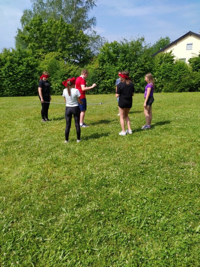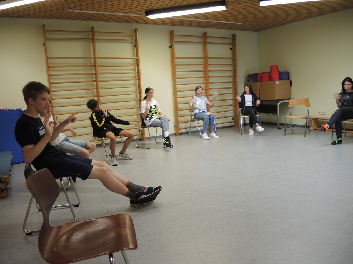 Einen informativen Vormittag verbrachten die Schülerinnen und Schüler der Klasse M7 zusammen mit ihren Fachlehrerinnen Fr. Bogenberger und Fr. Simmel am 22.06.2022 an der Berufsfachschule in Mitterfels. Nach einem kurzen Überblick über die drei Zweige der Marianne-Rosenbaum-Schule wurde in kleinen Gruppen, zusammen mit Schülerinnen und Schülern der Berufsfachschule, einiges ausprobiert und hergestellt. So durften wir in der großen Lehrküche Waffeln backen und die extra für uns selbstgebackenen Schildkrötensemmeln belegen. Frisch gestärkt ging es weiter zur Musikstunde in der Kinderpflege. Dort erhielten wir einen Einblick in die Arbeit im Kindergarten und wie dort gemeinsam Lieder erarbeitet werden. Schritt für Schritt erlernten so alle in kurzer Zeit einen Sprechgesang mit Bodypercussion. Bei der Sozialpflege konnte am eigenen Körper erfahren werden, wie es ist blind zu sein und sich um jemand zu kümmern, der selber nicht sehen kann. Gemeinsam musste eine knifflige Aufgabe in Teamarbeit bewältigt werden. Anhand eines Blindenalphabets konnten wir noch versuchen Buchstaben zu erfühlen. Zu guter Letzt bedankten wir uns für die tollen Angebote und Einblicke und gingen zurück zur Schule.