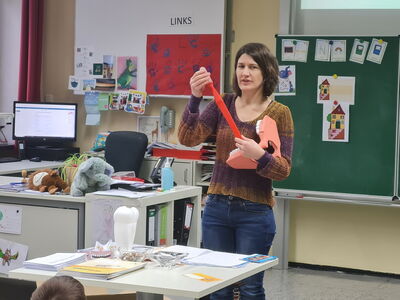 Am vergangenen Montag besuchte die ortsansässige Zahnärztin Theresa Kanzelsperger die Klasse 1a und erklärte den Kindern passend zum HSU-Unterricht das richtige Zähneputzen. Sehr anschaulich und mit kindgerechten Beispielen stellte Frau Kanzelsperger dieses Thema dar. Am Ende dieser besonderen HSU-Stunde waren sich alle Kinder einig: „Jetzt kann ich mir das noch besser vorstellen!“