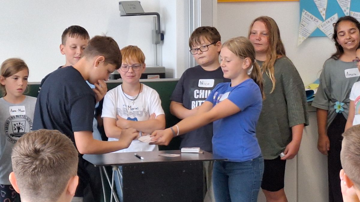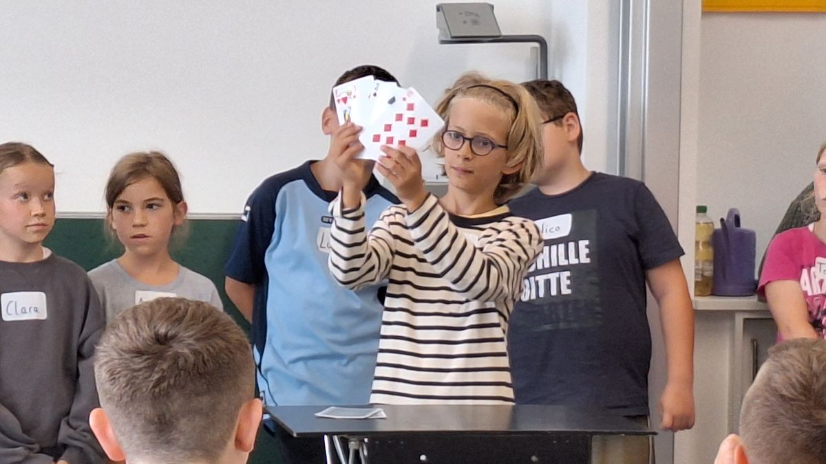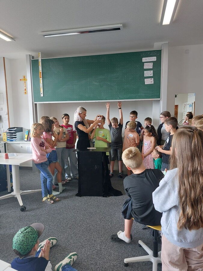 Frau Marlene Aigner kam zu Besuch und hat an zwei Tagen für die Klassen 4a und bei zusammen mit ihrer Tochter und ihrem Sohn einen Zauber-Workshop durchgeführt.